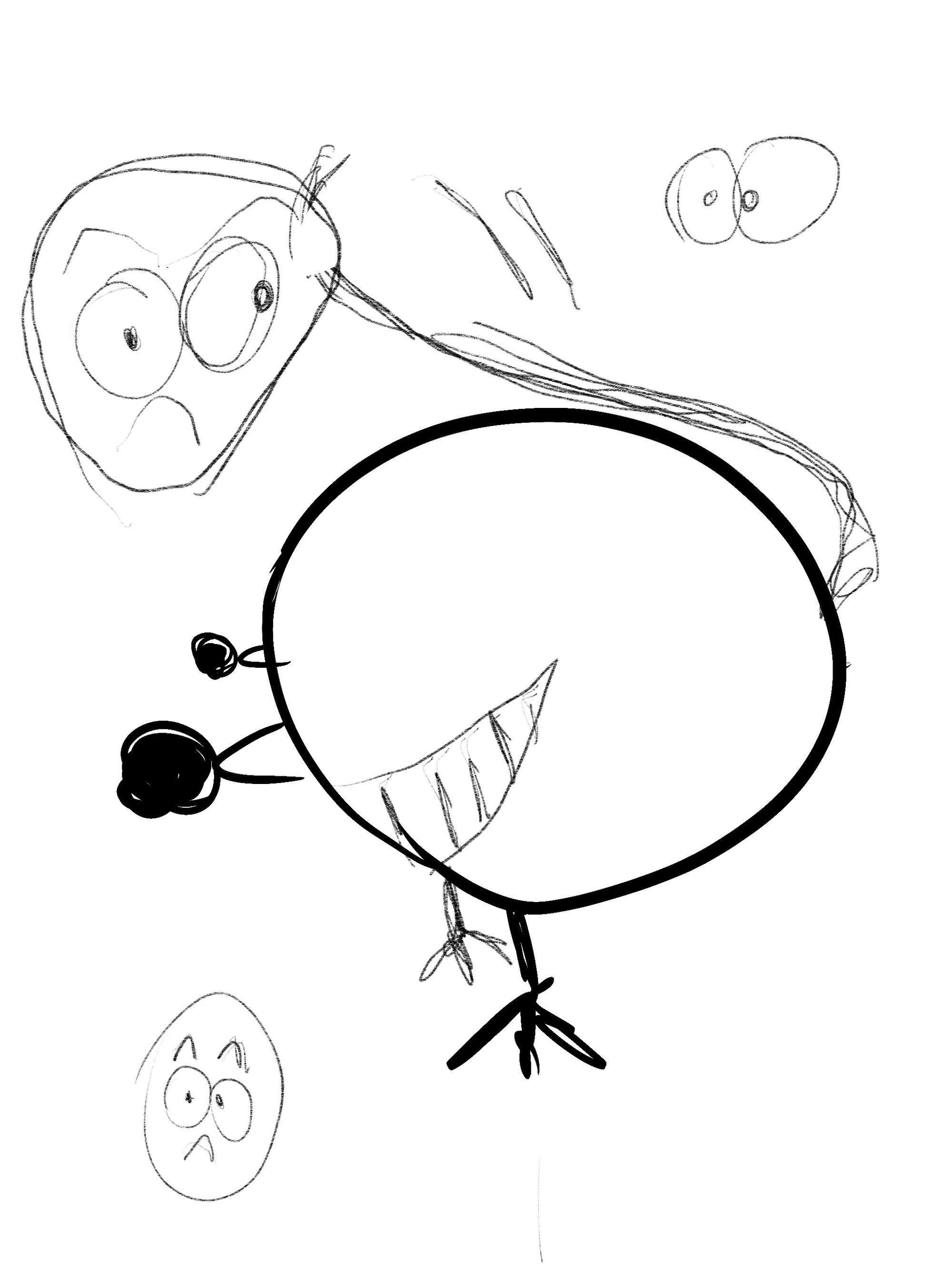 So these monsters were inspired by some pencil drawings my wife did while messing about with my iPad. She just scribbled some nonsense she thought could be a monster for about 20 seconds. She would be the first to admit she is not an artist, and in truth she was not really trying. The interesting thing was that creating them from that inspiration ended up being a lot of fun, and her drawings hinted at creative choices I would not have thought about.